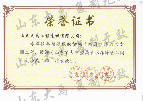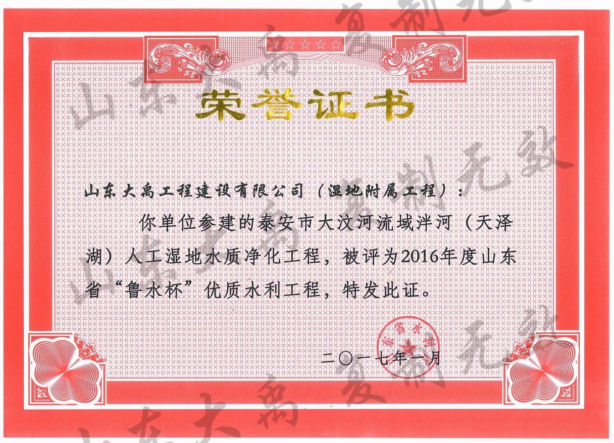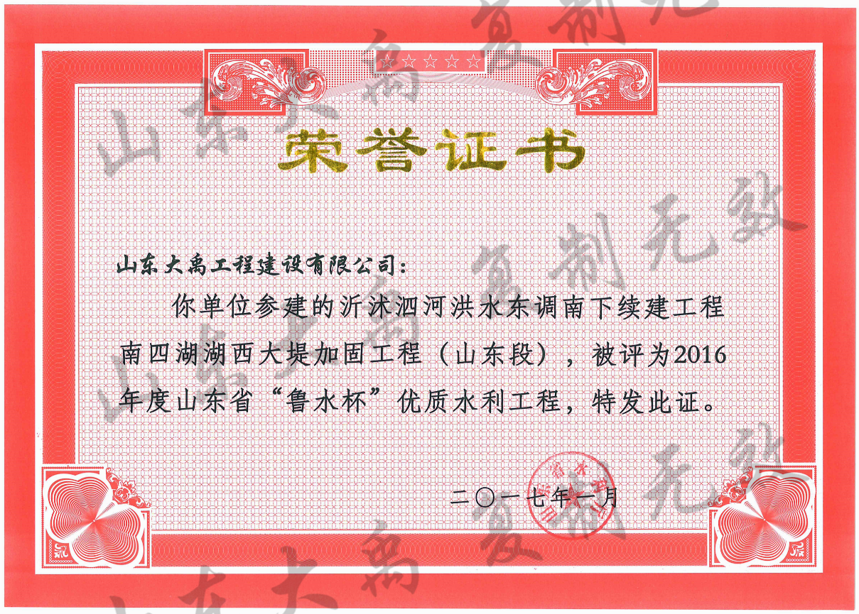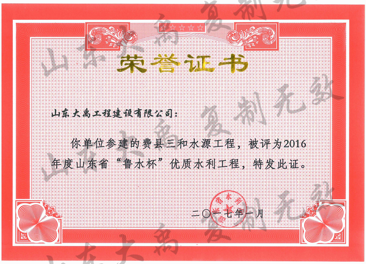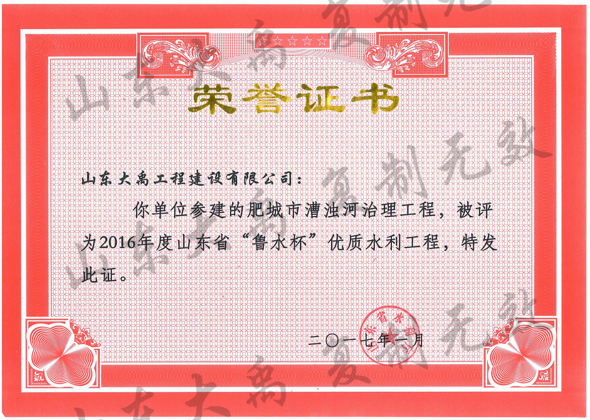 山東省“魯水杯”優(yōu)質(zhì)水利工程