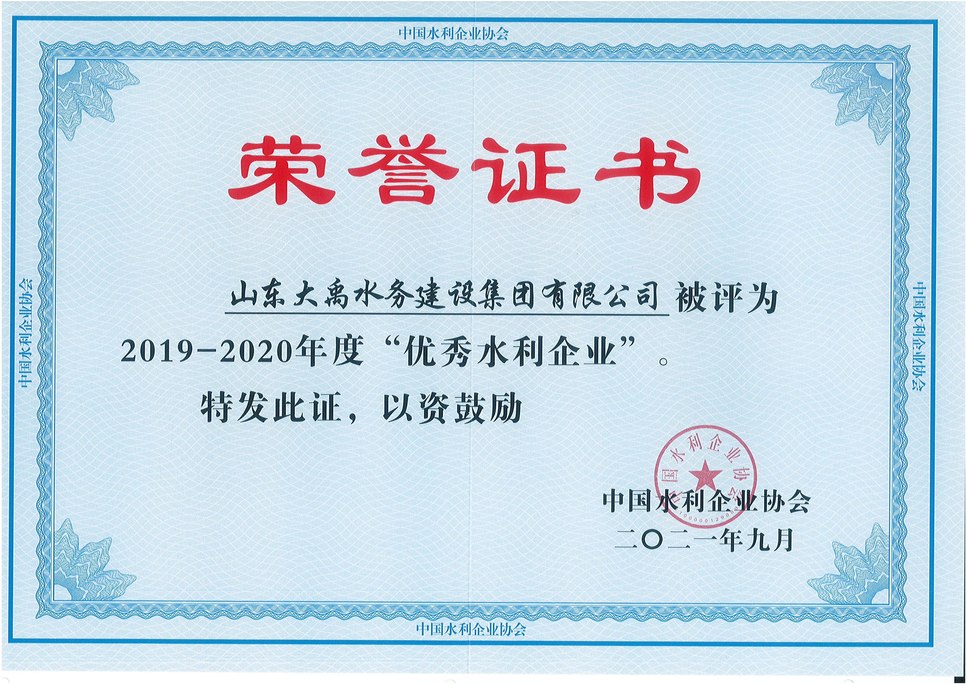 優(yōu)秀水利企業(yè)證書