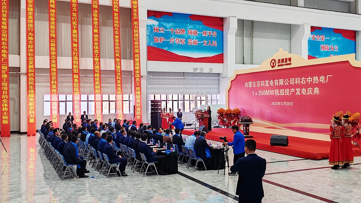京科萬象新,源源展宏圖。2023年12月28日,內(nèi)蒙古京科發(fā)電有限公司科右中熱電廠1×350MW機(jī)組投產(chǎn)發(fā)電慶典圓滿舉行。興安盟政協(xié)黨組書記、主席劉樹成,黨組成員、秘書長葉明,興安盟行署一級(jí)巡視員張冰宇,二級(jí)巡視員陳全平,興安盟人大工委黨組成員、副主任郭堂,科右中旗旗委書記蔡寶軍等盟、旗各級(jí)領(lǐng)導(dǎo),源源集團(tuán)董事長兼總經(jīng)理喬麗博,黨委書記、副董事長王愛華,集團(tuán)副總經(jīng)理兼京科發(fā)電董事長鄭亞剛,京科發(fā)電經(jīng)營班子,工程各參建單位領(lǐng)導(dǎo)和項(xiàng)目負(fù)責(zé)人,各參建單位代表80余人出席慶典,慶典儀式由王書記主持。