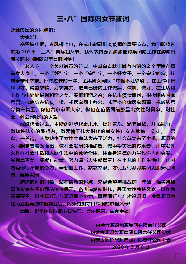 文章來源:內(nèi)蒙古源源能源集團(tuán)發(fā)布時間:2020-03-08瀏覽次數(shù):1238