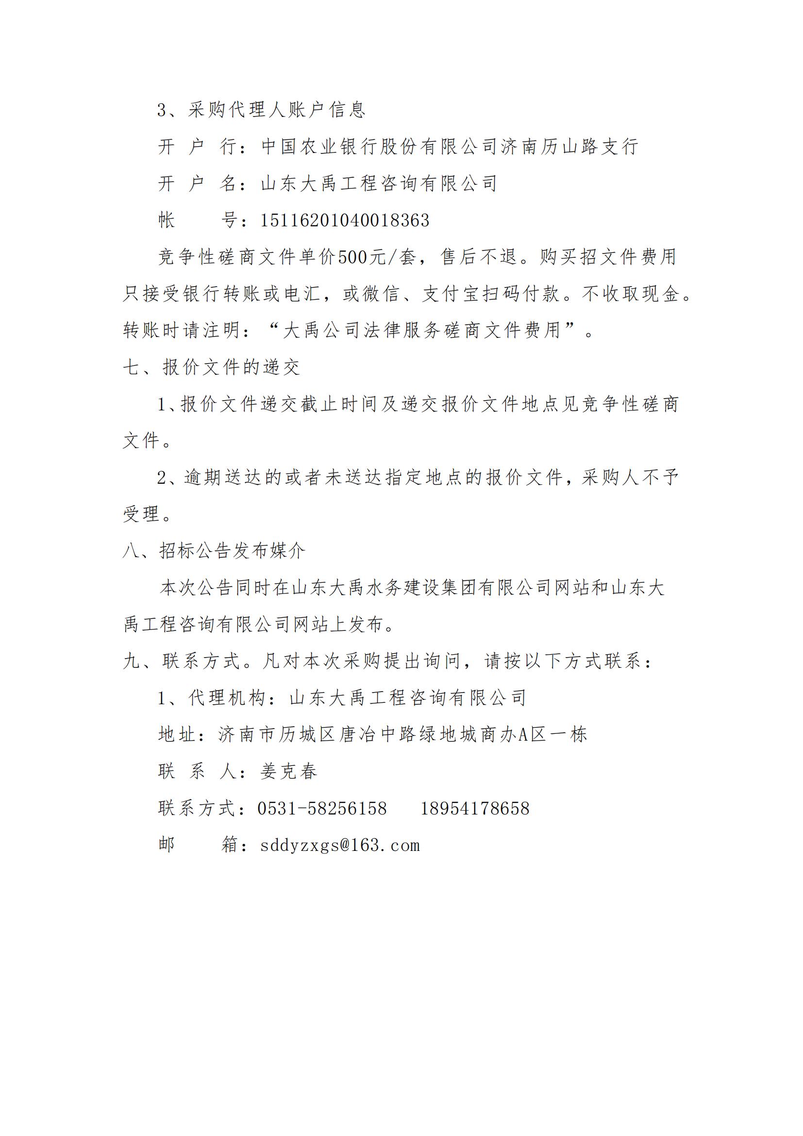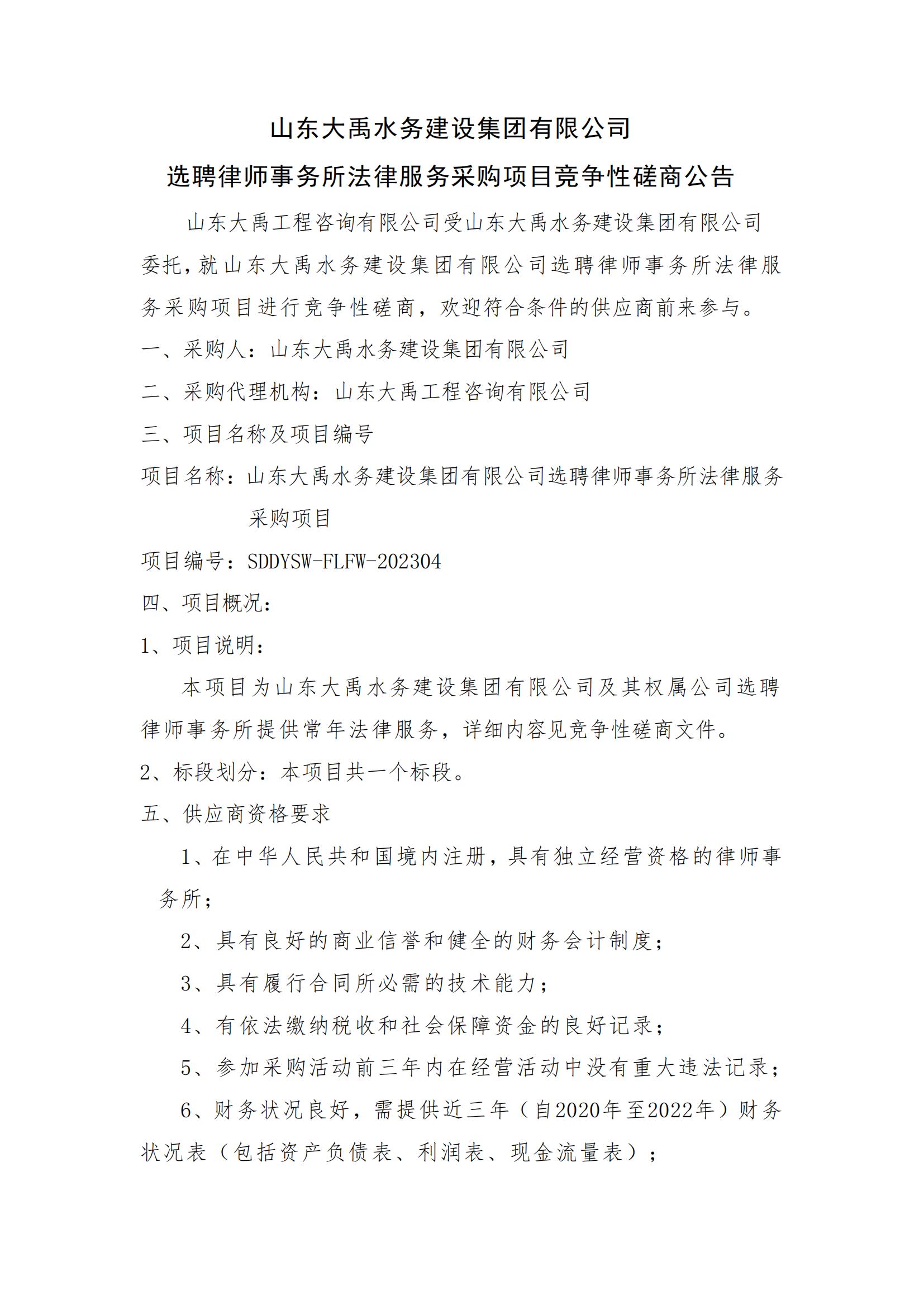 山東大禹水務建設集團有限公司選聘律師事務所法律服務采購項目競爭性磋商公告