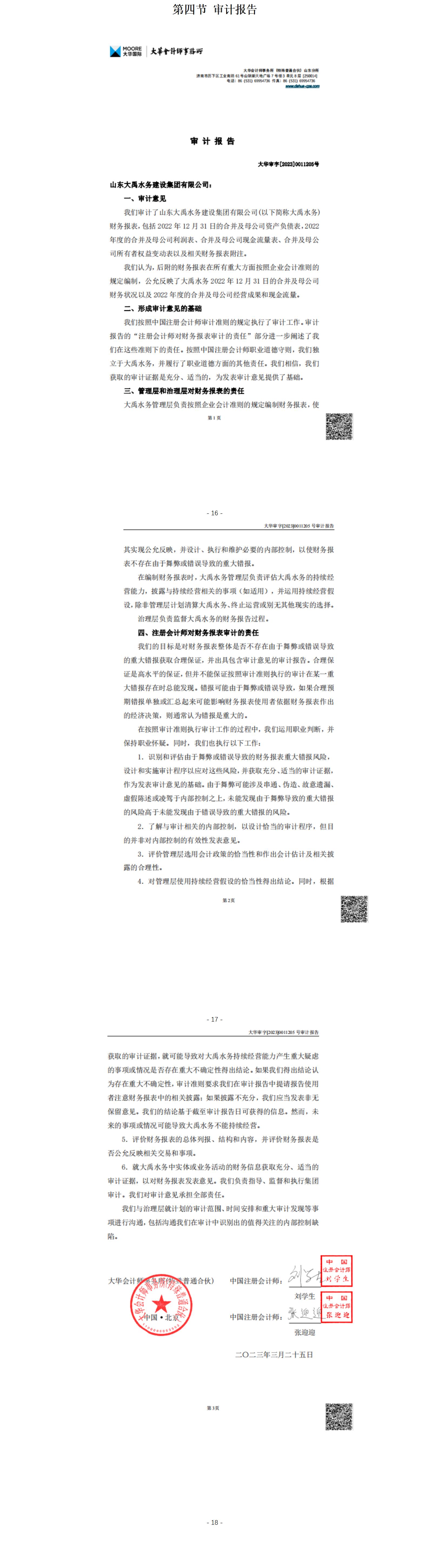 山東大禹水務建設集團有限公司2022年度財務重大信息公告