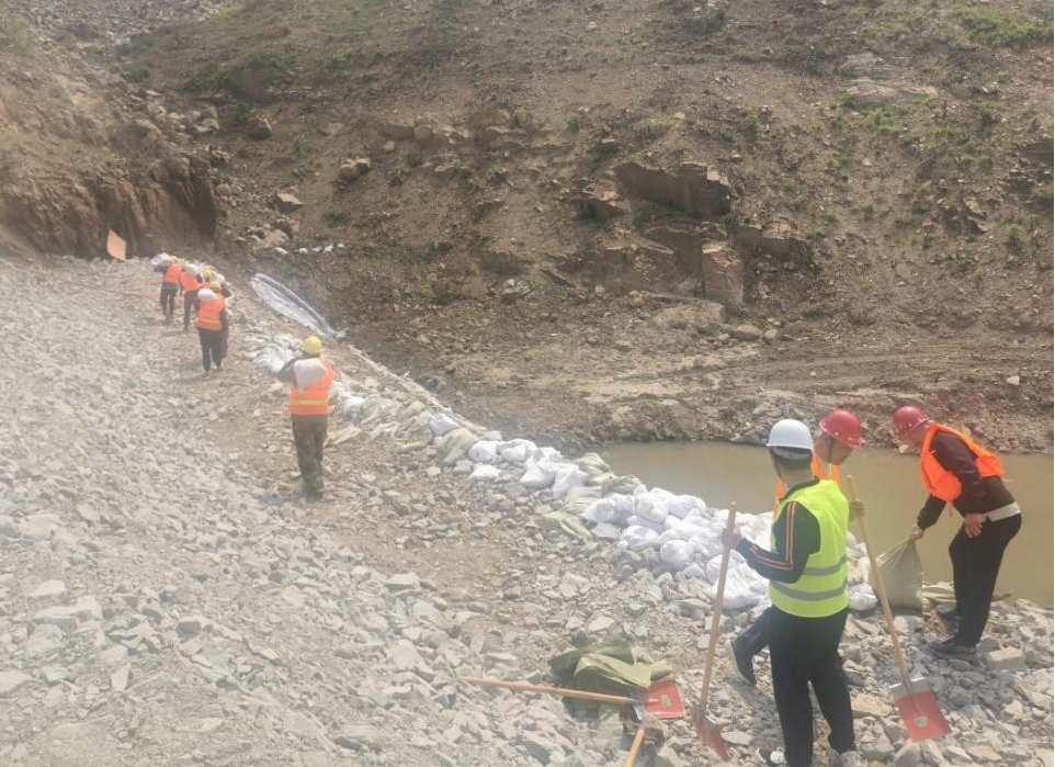 防汛應急演練現(xiàn)場模擬“受強降雨影響,庫區(qū)水位持續(xù)上漲,大壩導流泄洪能力有限,大壩施工人員、設(shè)備等可能被洪水沖走,造成重大損失”情景。工程防汛領(lǐng)導小組立即啟動應急預案,在接到險情報告后,搶險救援隊、安全保衛(wèi)組、后勤保障組、醫(yī)療救護組迅速行動。搶險救援隊對圍堰進行加固,為人員及物資轉(zhuǎn)移爭取時間;后勤保障組組織人員轉(zhuǎn)移設(shè)備及重要物資;安全保衛(wèi)組對現(xiàn)場進行警戒,并組織疏散無關(guān)人員。各個環(huán)節(jié)緊張有序,圓滿完成既定目標。