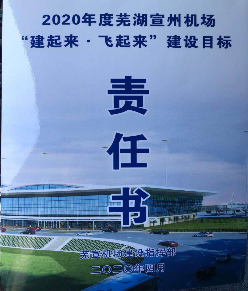 2020年4月28日上午,蕪湖宣城機場實現“建起來、飛起來”建設目標動員會在蕪湖縣召開,機場建設指揮部與各參建單位簽訂了責任書。蕪湖宣城機場建設投資有限公司董事長孫躍進、總經理許耀輝、蕪湖縣副縣長劉建軍、蕪湖市水務局總工程師李加高及29家參建單位參加會議,集團公司副總經理馬永收代表集團公司簽訂了責任書。