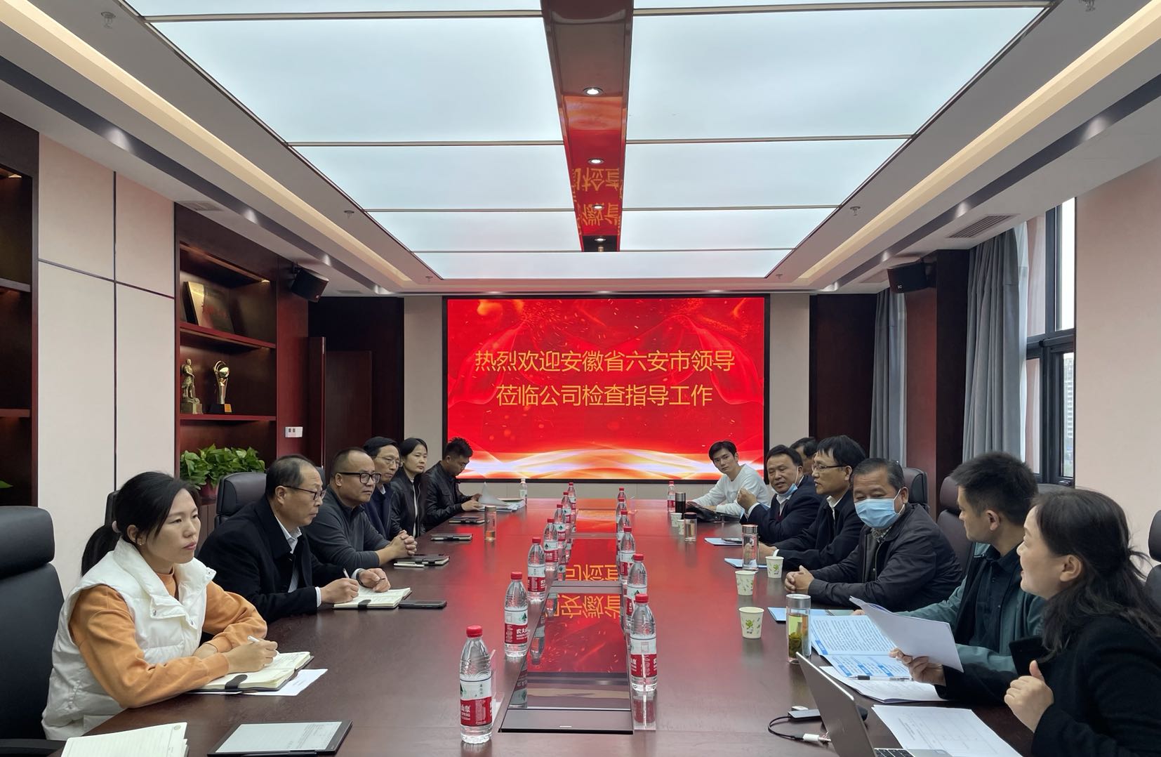 副總經理陳鳳振代表集團對考察組的到來表示熱烈的歡迎,就考察組對集團的信任表示衷心的感謝,并從公司發展歷程、業務范圍、業績獎項等方面進行了介紹。會上,考察組緊緊圍繞此次考察的要求,查看了大禹集團的營業執照、資質證書、安全生產許可證、獎項、人員證件、業績等材料,就大禹集團的施工控制能力和團隊建設進行了交流,考察組對大禹集團綜合實力、經營模式、管理方式給與充分肯定,就大禹集團近年來在安徽市場取得的驕人成績表示祝賀。